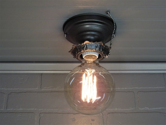 Farmhouse Pull Chain Flush Mount Ceiling Light Single Bulb Art Deco Ceiling Light Farmhouse Decor Light Fixture Cottage Decor