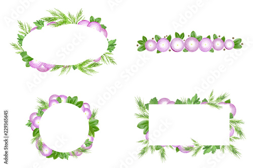 Sliced Vegetables And Fruits Border Frame Vector Background